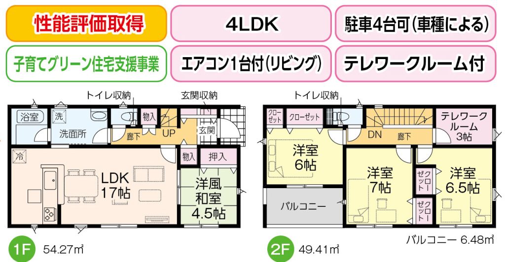 | 設備・条件 | 保証付住宅 ガスコンロ カウンターキッチン 給湯 追い焚き 洗髪洗面化粧台 浴室乾燥機 温水洗浄便座 エアコン 床下収納 TVドアホン プロパンガス 公営水道 排水下水 駐車場有 バルコニー フローリング 耐震構造 制震構造 住宅性能評価書 | ||